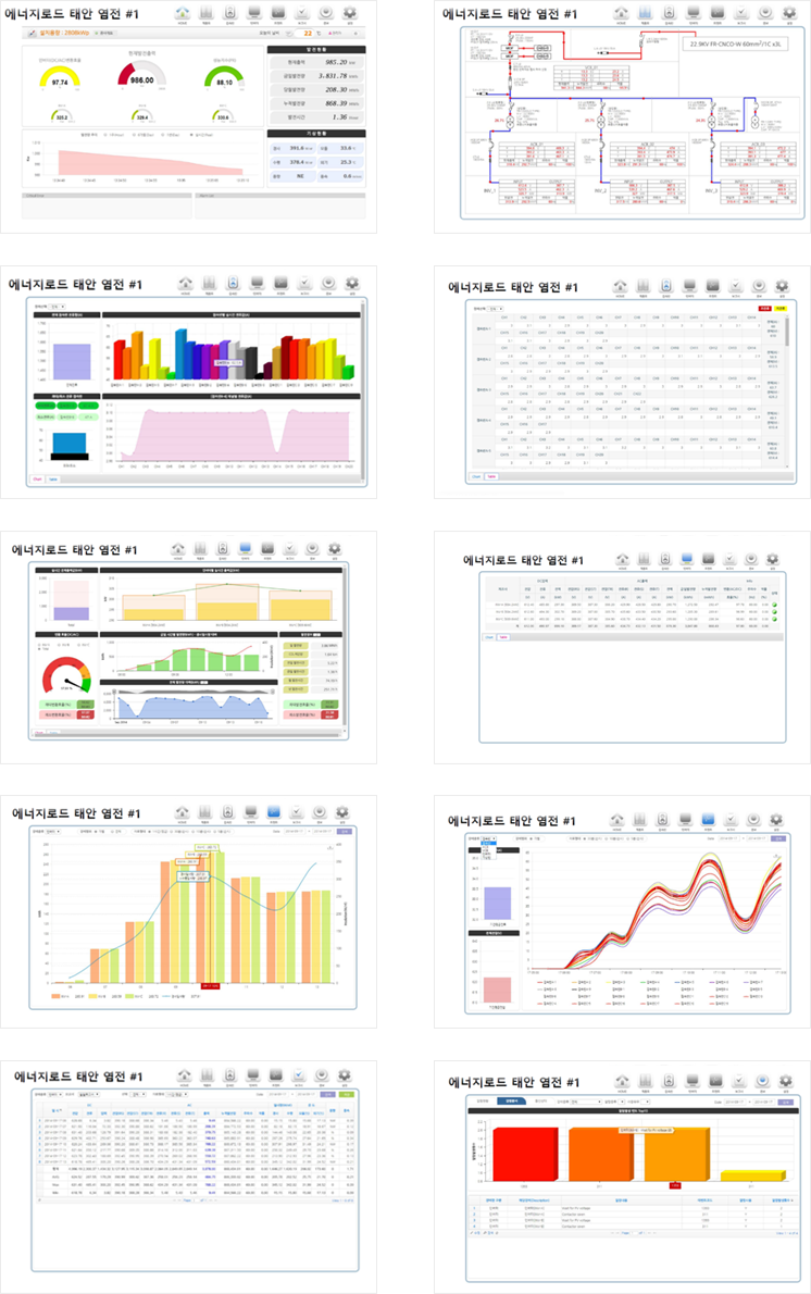 - 인버터, 접속반, 기상관측 등 수배전반의 실시간 데이터 감시